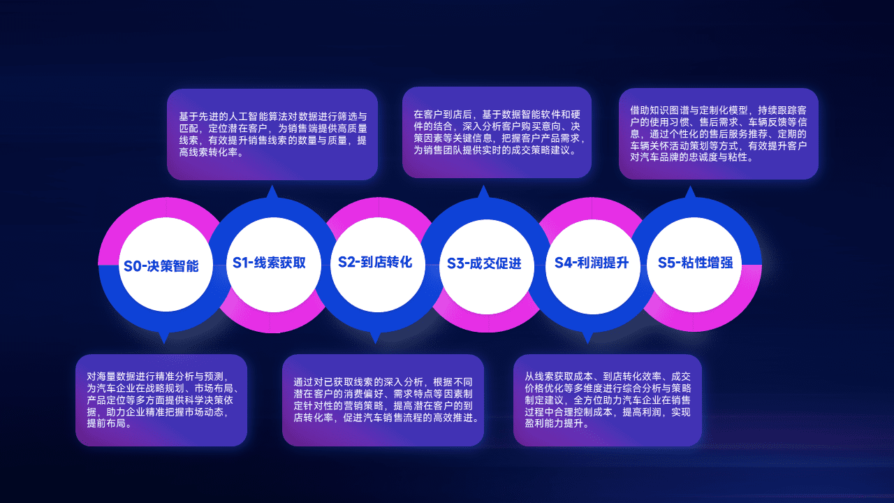 基于销售转化漏斗的薄弱环节,,,,为客户提供数据+模型+运营的智能应用,,实现销售业绩的提升;推动线索管理全链路的精细化管理和运营。。。。